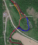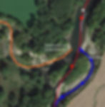 All of the below photos are depicting my GPS track from my race last year in 2018. You will see my path taken in Red, the normal flow of the river in Blue, and the first entrance or real cut if available in orange. There are also mile markers laid out so if you have a GPS watch like I do and didn't have time to scout these you can just make a note mileage wise where these cuts are so you are prepared for their upcoming arrival on the course.